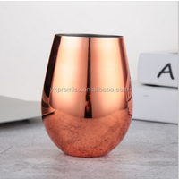 single wall stainless steel wine cup, copper plated stemless wine glass, customized wine tumbler